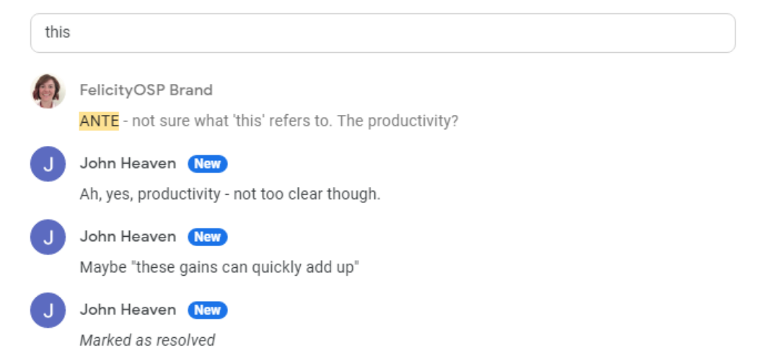 Another way this can get tricky for us at OSP is when we’re writing case studies for our clients. So we’d be writing a piece that describes our client’s client, and perhaps referring to *their* customers or users. So there can be long rhetorical distances between whatever we’re talking about and the next "this, "that" or "they" referring to it.