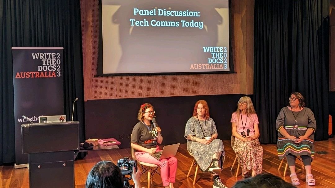 OSPea, Felicity Brand, hosted a discussion panel about the current state of technical communication at the Write the Docs Australia 2023 conference.