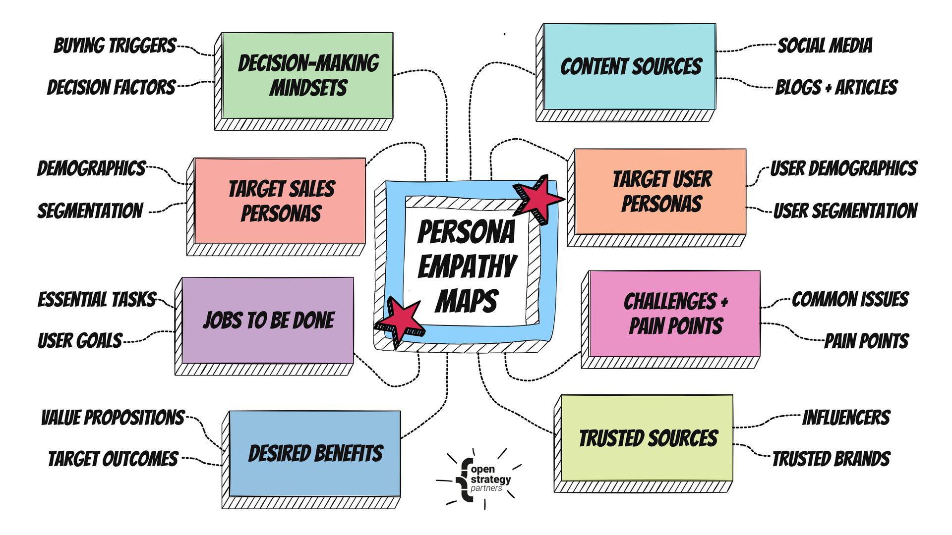 We use Persona Empathy Maps to help you (as the name suggests) understand your target audience. Learning to identify with them drives connection and helps ensure that you address their communication needs.