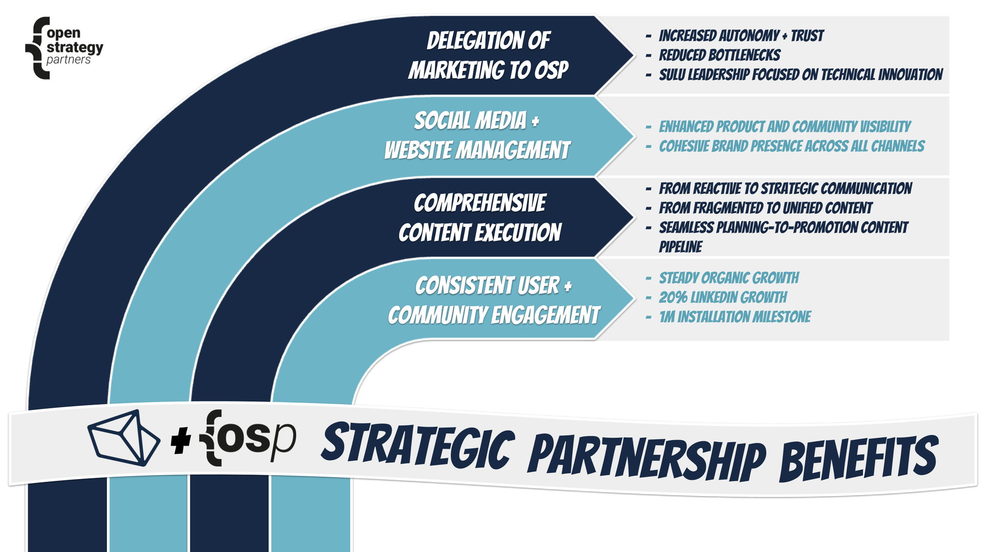 Sulu now fully entrusts OSP with content ideation and execution, working together towards results rather than just implementing predefined tasks. This has freed up Sulu's team to focus more on their core business delivering technology and client work, while relying on OSP to handle marketing with minimal oversight.