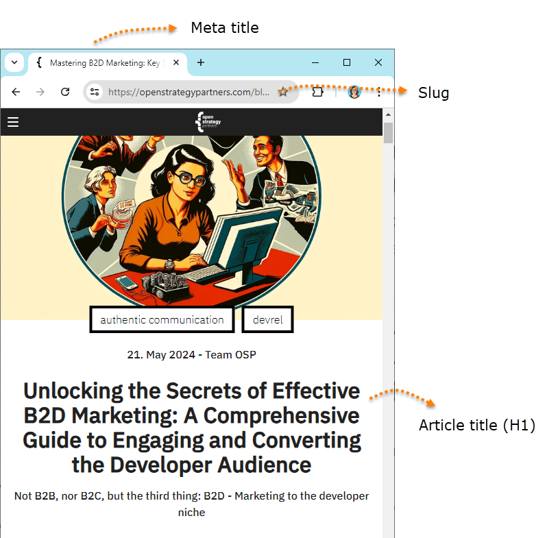 Best practices for article titles, meta titles, meta descriptions, and slugs in B2B copywriting
