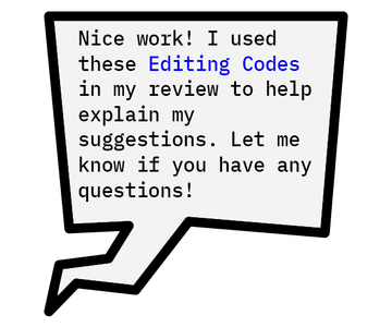 Nice work! I used these Editing Codes in my review to help explain my suggestions. Let me know if you have any questions!